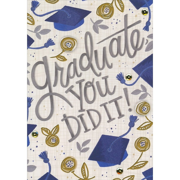 Designer Greetings You Did It Grad Caps 3d Gold Tip On Flowers And Sequins Hand Decorated Graduation Congratulations Card Walmart Com